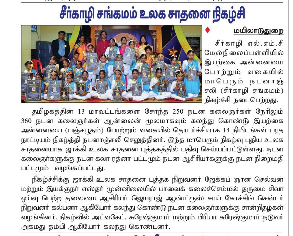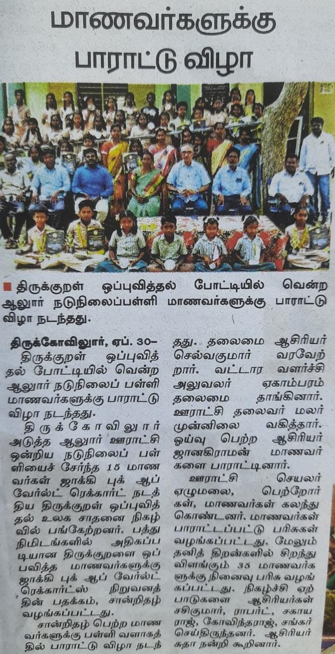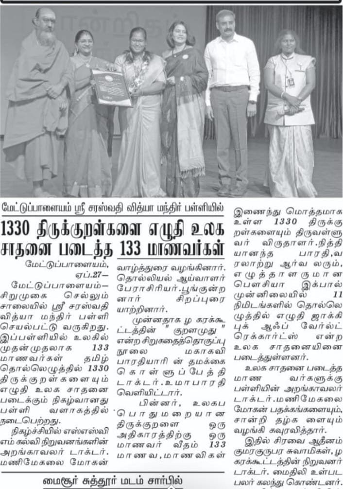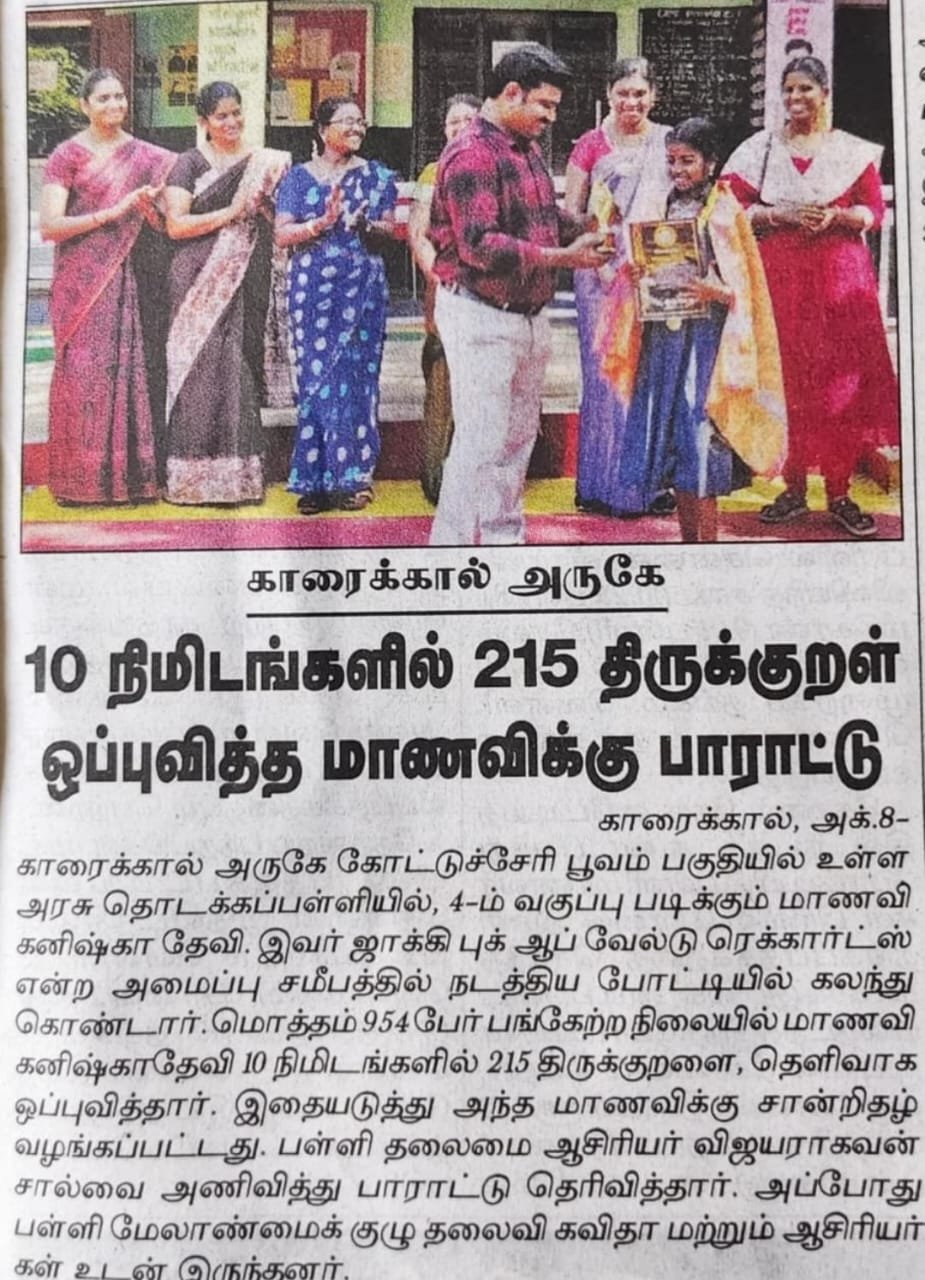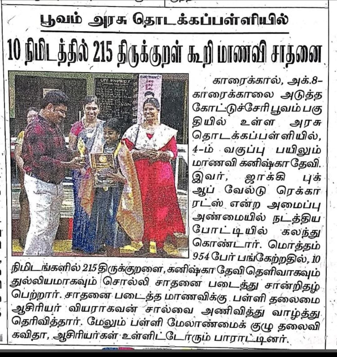 MAXIMUM NUMBER OF THIRUKURAL PRESENTED IN 10 MINUTES