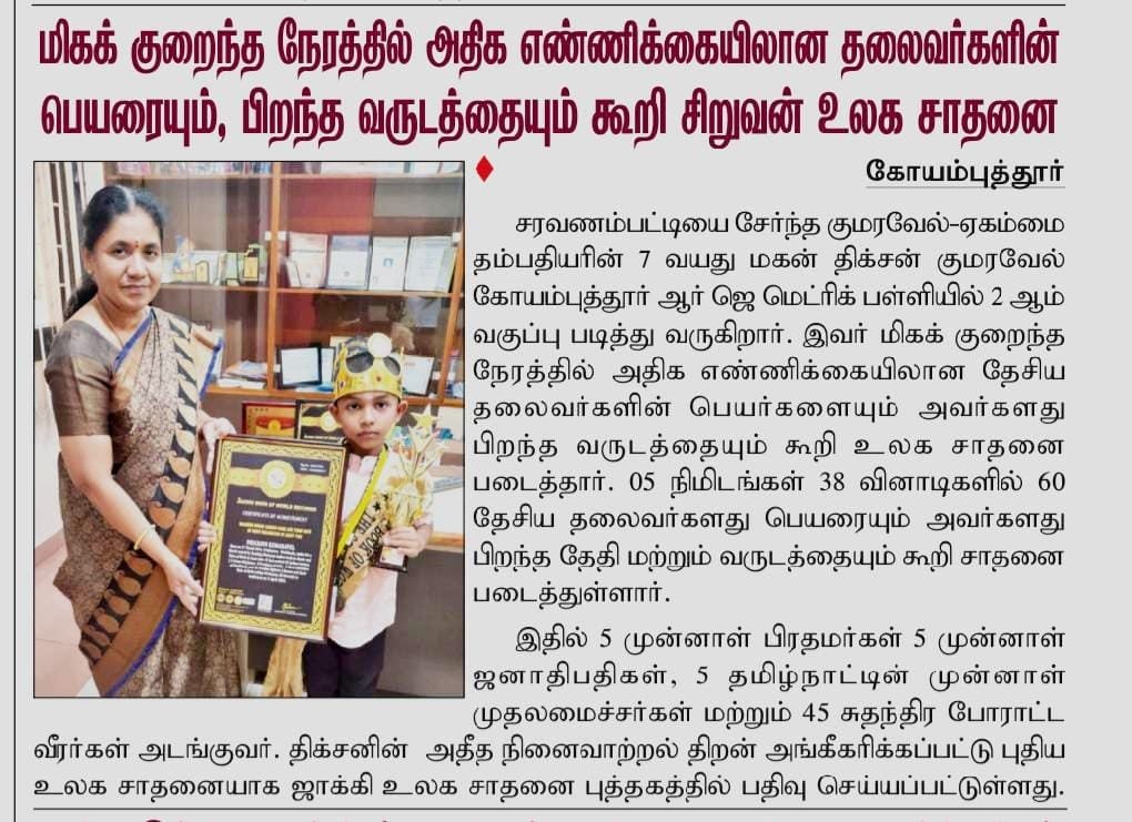 jbuser2026-01-16T19:54:54+05:30L.VIGNESHWARAN, born on August 21, 2011, residing at Tirupur, Tamilnadu, India, is an extraordinarily talented young individual, has...