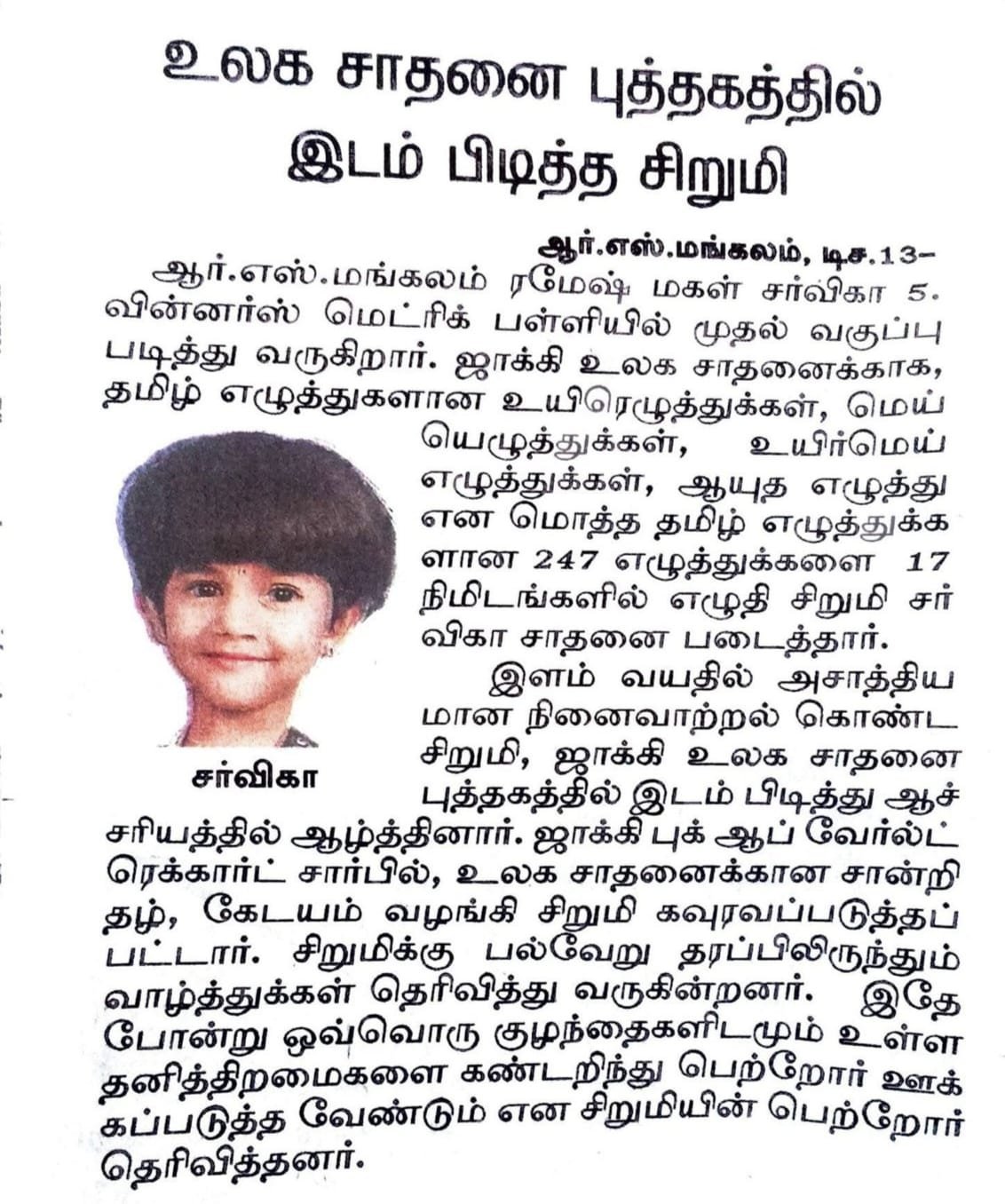 jbuser2026-01-16T20:21:50+05:30VARSHITHA N, born on May 20, 2023, in Thiruttani taluk, Thiruvallur district, Tamil Nadu, India, is an extraordinary...