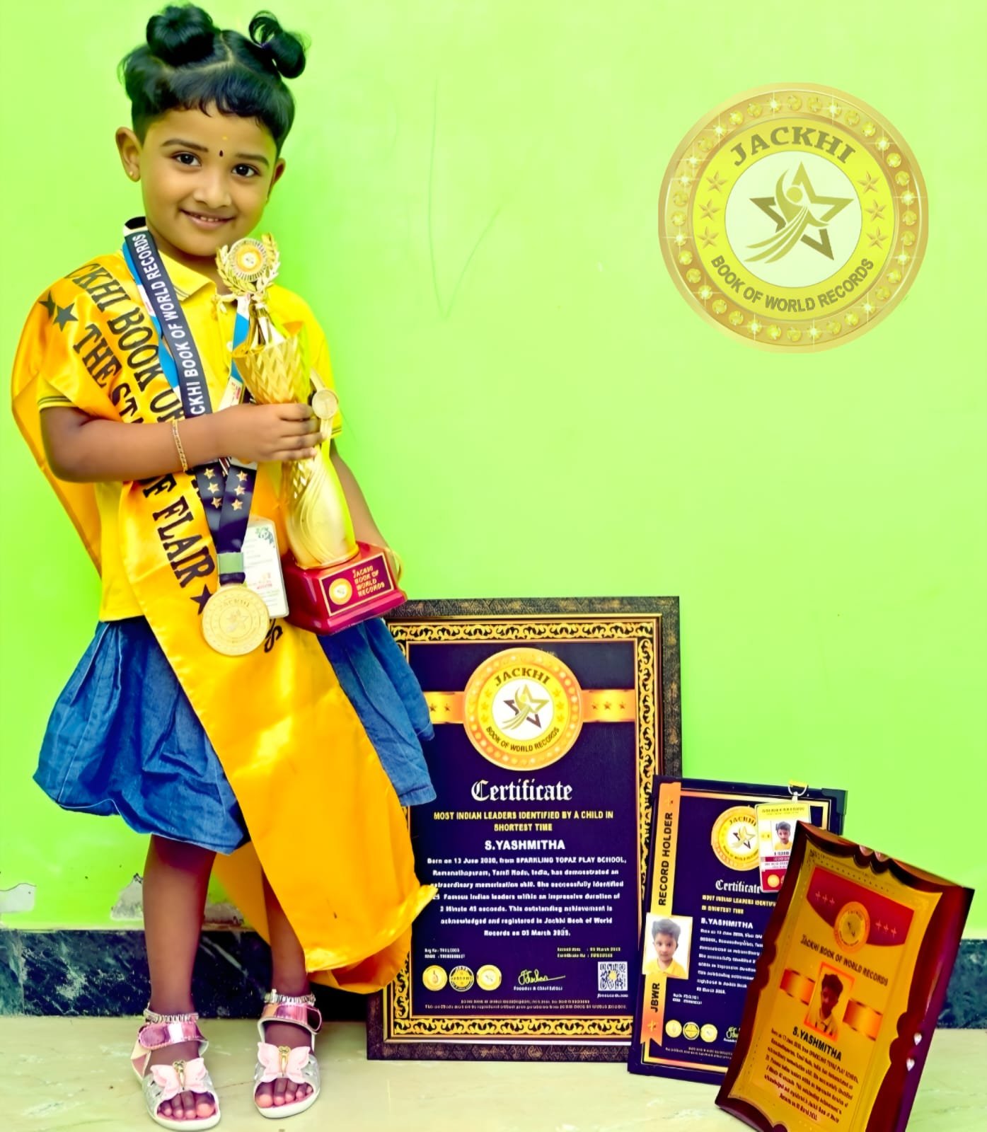 S.YASHMITHA, born on 13 June 2020, from SPARKLING TOPAZ PLAY SCHOOL, Ramanathapuram, Tamil Nadu, India, has demonstrated an extraordinary memorization skill. She Identified 25 Famous Indian leaders within an impressive duration of 2 minute 45 seconds.
