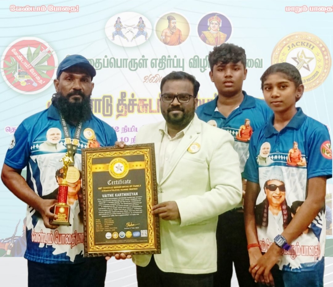 The entire performance was completed in exactly 12 minutes. This record was dedicated to creating Public Awareness Against Drug Abuse, successfully merging the valor of Tamil Martial Arts with the timeless wisdom of Tamil Literature.