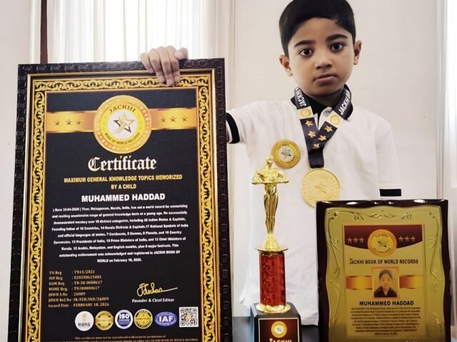 jbuser2026-04-02T08:08:47+05:30 MUHAMMED HADDAD( Born: 30-04-2020)Tirur, Malappuram, Kerala, India has set a world record for memorizing and reciting an extensive...