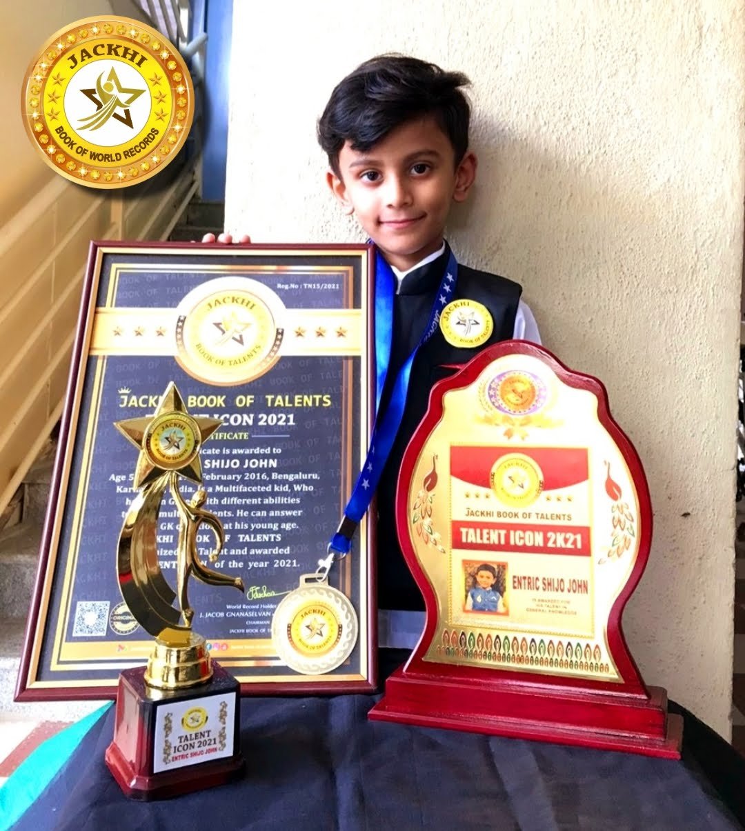 ENTRIC SHIJO JOHN , Age 5, Born on 17 February 2016, Bengaluru, Karnataka, India. is a Multifaceted Kid,Who has been Gifted with different abilities to excel multiple talents. He can answer various GK questions at his young age.