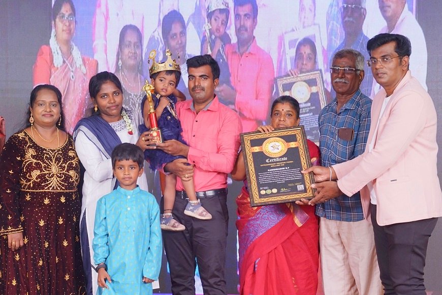 KANISHKASHRI B.T, Born on October 06, 2022, Thirukkachur, Chengalpattu district, Tamilnadu, India has an extraordinary Memorization skill. She identified and recited 180 Tamil letters, 26 English alphabets, 21 Animals, 21 Fruits, 20 Food items, 19 Transports, 18 Vegetables, 14 Body parts, 13 Birds, 12 Months of the year, 7 Days of the Week, 6 Insects and Numbers 1 to 20 at the age of 2 Years and 5 Months.
