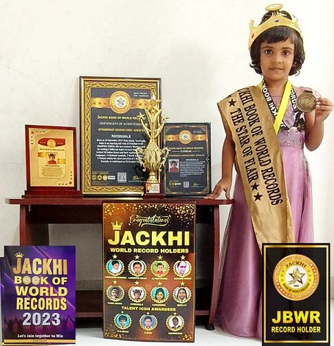 PAVISHANA.K Born on 22 November 2017 from Salem, Tamilnadu, India is an Amazing kid with EXTRAORDINARY GRASPING POWER. She has created a World record by reciting 5 different topics in least time. She has recited 28 Indian States and their capitals, 22 Indian languages, 16 National symbols, 7 World wonders and 9 Planets within the short duration of 1 Minute 45 Seconds.