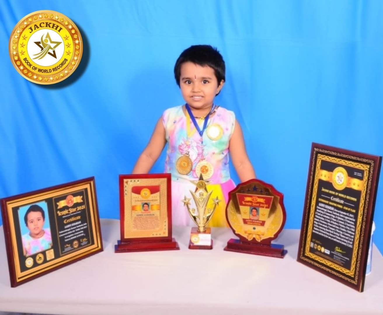 AASHVI SUDARSAN , Born on September 05, 2018, Pazhavanthangal, Chennai, Tamilnadu, India is appreciated for Identifiying 54 Common things, 26 Alphabets, 11 Professions, 12 Tamil uyir eluthukkal, 12 Shapes ,12 Animals,12 Good Habits, 9 Relationships, 11 Fruits, 10 Numbers, 9 Vehicles, 4 Pets, 4 Wild Animals, 4 Furnitures, 4 House hold items, 4 Eatables, 4 Bathroom things, 4 Farm animals, 4 Transport, 4 Wearings, 4 Countries, and 4 Colors. Answering About Myself. Reciting 7 Rhymes and 1 to 10 Numbers. Performed Fancy dress on 9 themes and doing 10 self interested activities by her own, as confirmed on January 23 ,2022.