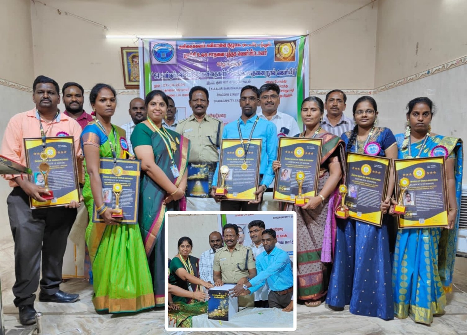 Amb.KAVIPAVAI KARTHIK from KAVITHAIKALAM KAVIPAAVAI KULUMAM organized a World record event to publish World first poetry anthology book, written by maximum number of poets. The book named KAALANGAL PESUM KAAVIYANGAL consists of 11,000 poems ( Tamil and English ) written by 62 poets. This world first poetry anthology book was compiled and published by KAVITHAIKALAM KAVIPAAVAI KULUMAM on 07th April at Kulaalar Samuthaya koodam, Thaathakapatti, Salem district, Tamilnadu.