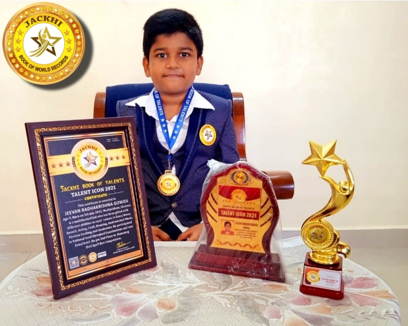 JEEVAN RADHAKRISHNA GOWDA ,Age 9, Born on 5th July 2012, Madipakkam, Chennai, is a multifaceted kid who has been gifted with different abilities to excel talents in Fancy Dress, Speech, Acting, Craft, Drawing, Instrumental Music and Fireless Cooking,Academics.He participated in National level Olympiad Examinations and won Zonal level, and participated in hummingbird Spell Bee competition.