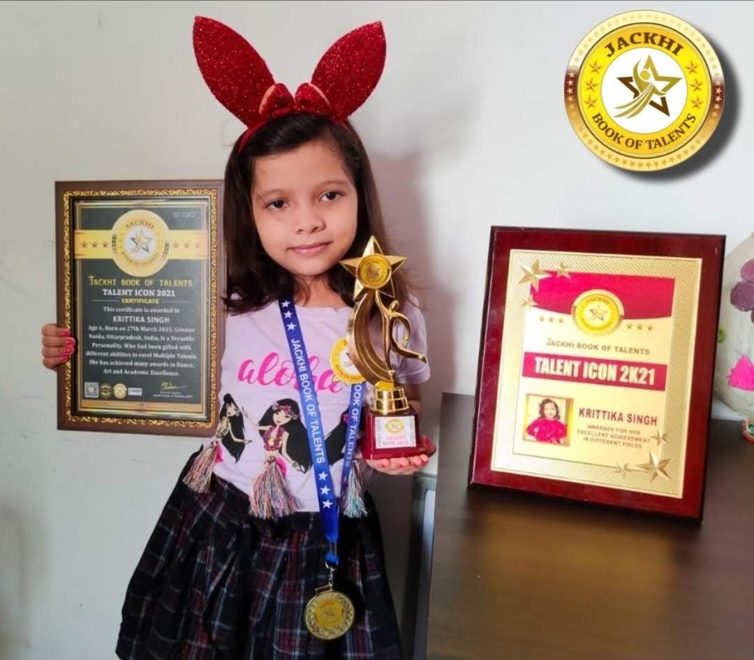 KRITTIKA SINGH Age 6 , Born on 27 March 2015, Greater Noida, Uttarpradesh, India is a Versatile personality, who had been gifted with different abilities to excel multiple talents. She has achieved many awards in Dance, Art and Academic Excellence.