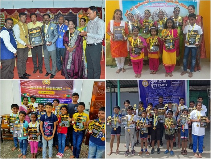 JACKHI CREATIONS, Mayiladuthurai District, Tamilnadu, India Organized a Mass World Record Event, entitled SKILL MARATHON 2022. 850 participants participated and performed their unique skill in Multiple venues with various platforms, which includes Chennai, Madurai, Melur, Velur, Usilampatti, Selam, Sirkali and online. This event is organized to commemorate the successful beginning of 76 th Independence day of India. This event is acknowledged and registered in JACKHI BOOK OF WORLD RECORDS.