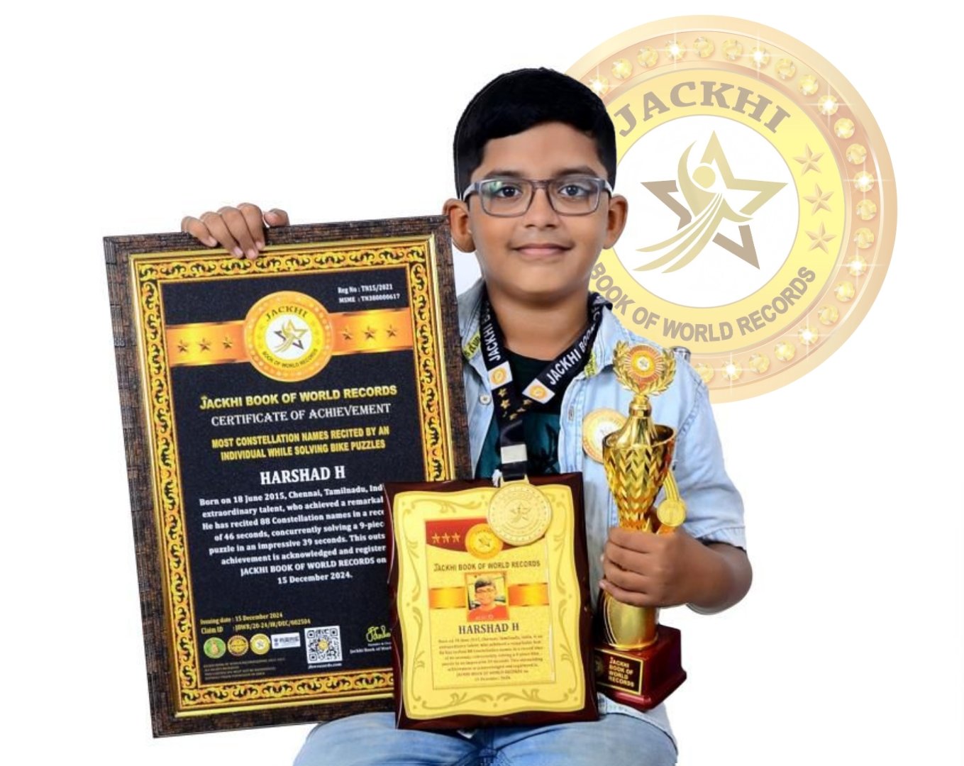 HARSHAD.H, Born on 18 June 2015, Chennai, Tamil Nadu, India, is an extraordinary talent, who achieved a remarkable feat. He has recited 88 Constellation names in a record time of 46 seconds, concurrently solving a 9-piece bike puzzle in an impressive 39 seconds.