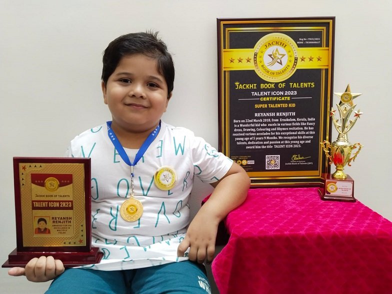 Born on 22nd March 2018, from Ernakulam, Kerala, India is a Wonderful kid who excels in various fields like Fancy dress, Drawing, Colouring and Rhymes recitation. He has received various accolades for his exceptional skills at this young age of 5 years 9 Months. We recognize his diverse talents, dedication and passion at this young age and award him the title TALENT ICON 2k23.