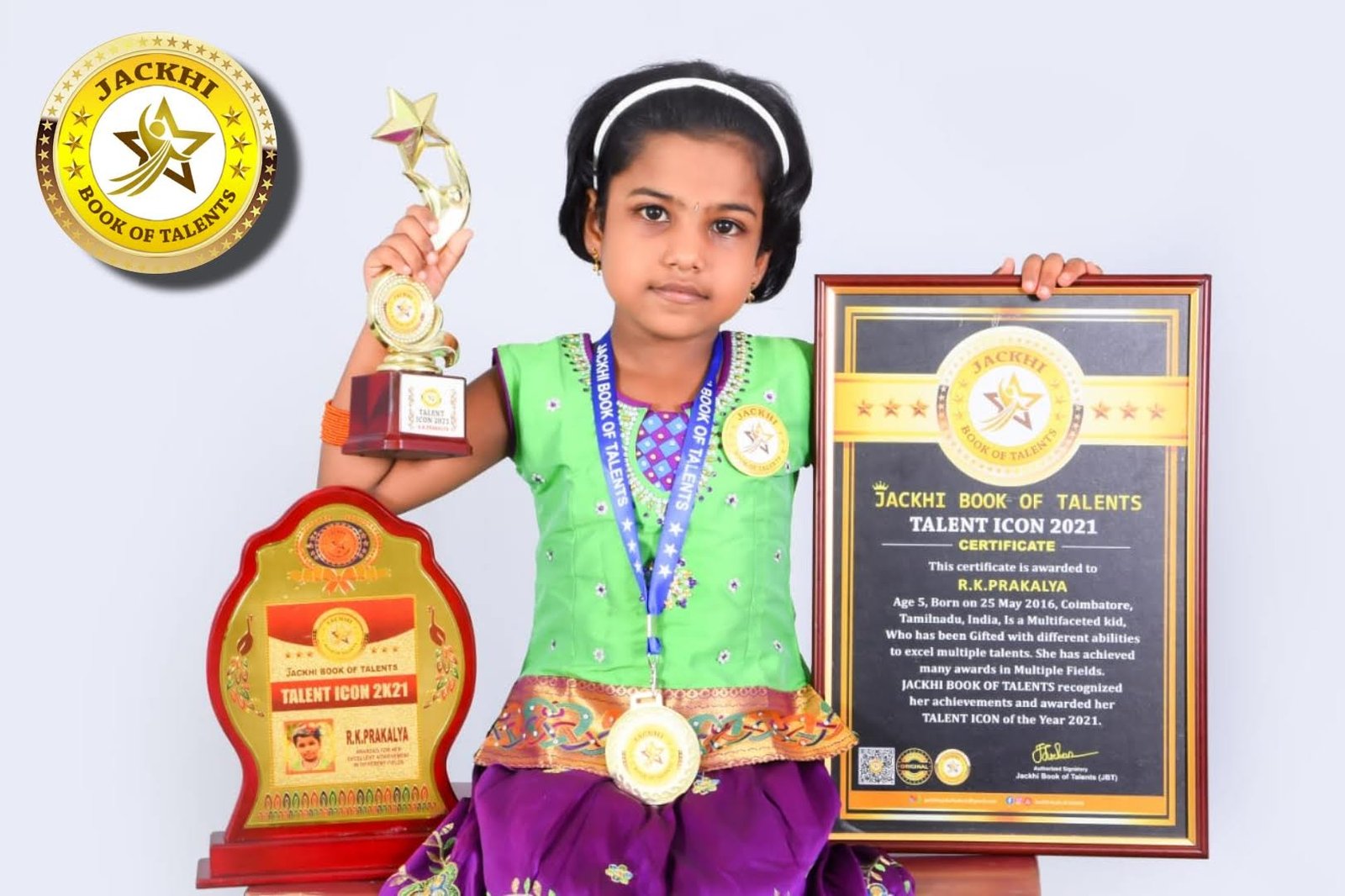 R.K.PRAKALYA, Age 5 ,Born on 26 May 2016, Coimbatore, Tamilnadu, India is a Multifaceted Kid who has been gifted with different abilities to excel multiple talents.She has achieved many awards in Multiple fields.