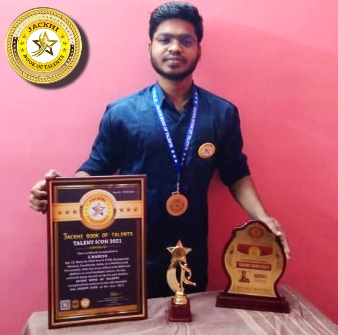 S.Naresh ,Age 23, Born on 18 March 1998, Rayapuram, Chennai, Tamilnadu, India. He has a Multifaceted Personality, Who has been Gifted with different abilities to excel multiple talents. He has achieved many awards in Sports and Studies.