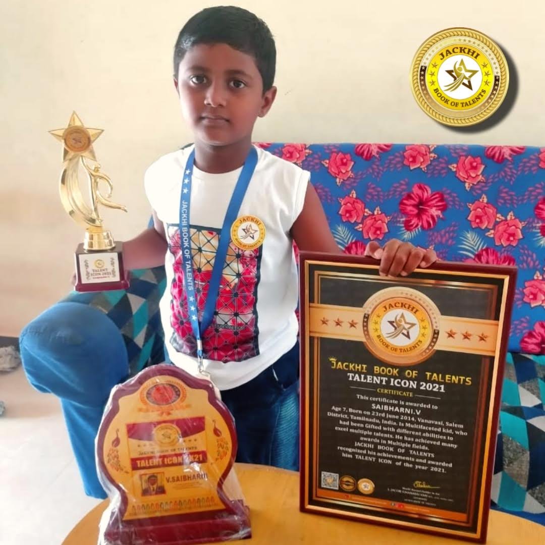 SAIBHARNI.V ,Age7 Born on 23rd June 2014 ,Vanavasi ,Salem District, Tamilnadu,India. is a Multifaceted Kid,Who had been Gifted with different abilities to excel multiple talents. He has achieved many awards in Multiple fields.