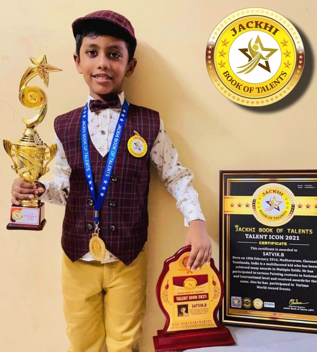 SATVIK.B, Born on 10th February 2016, Madhavaram, Chennai, Tamilnadu, India is a multifaceted kid who has been achieved many awards in Multiple fields. He has participated in various Painting contests in National and International level and received awards for the same. Also he has participated in Various World record Events.
