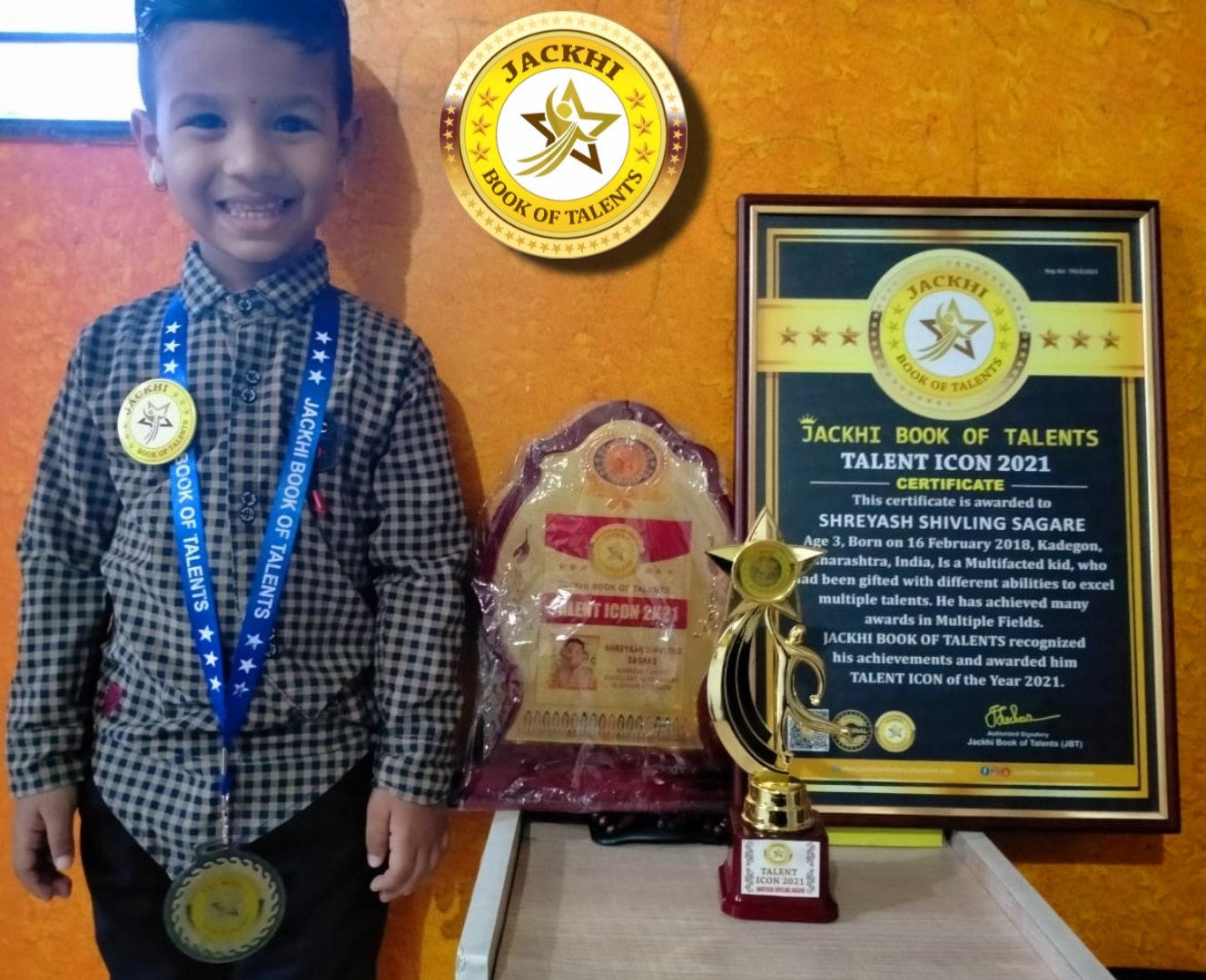 SHREYASH SHIVLING SAGARE, Age 3, Born on 16 February 2018, Kadegon, Maharashtra, India , is a multifaceted kid, who had been gifted with different abilities to excel multiple talents. He has achieved many awards in multiple fields.