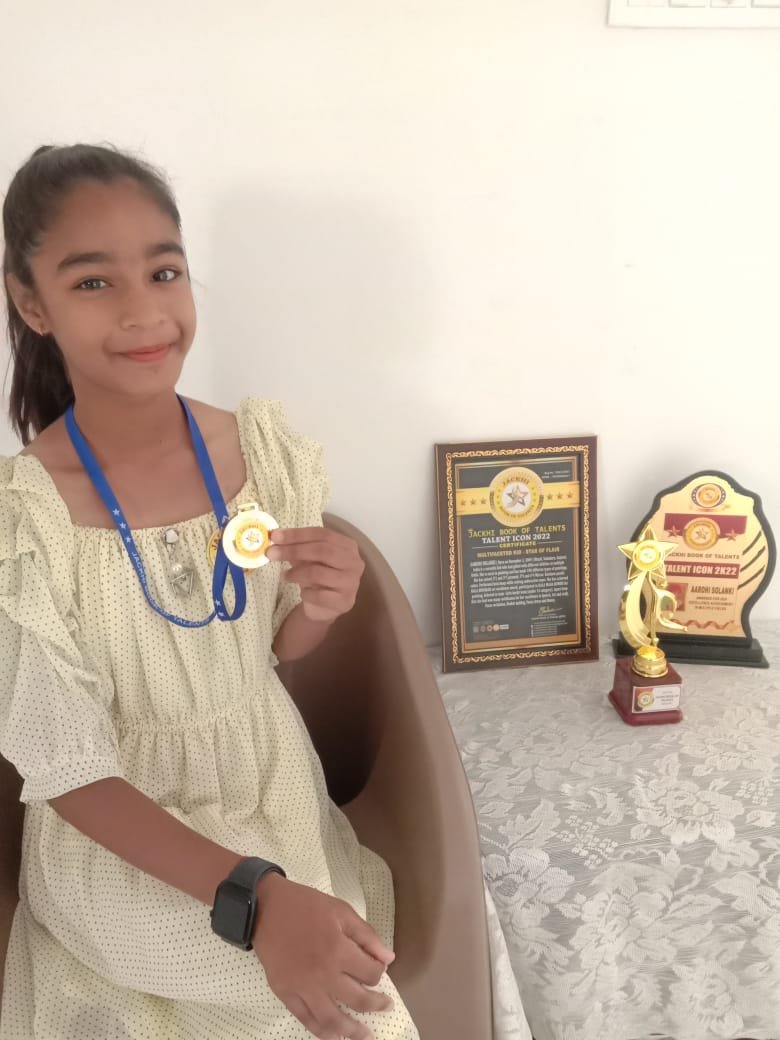 AAAROHI SOLANKI, Born on November 2,2009,bhayli,vadodara,gujrat,india is a versatile kid who had gifted with different abilities in multiple fields.she is excel in painting and has made 100 different types of paintings.She has solved 22 and 33 piramid, 33 and 4*4 Mirror, Rainbow puzzle cubes.performed hula hoop while solving subtraction sums.She has achieved kala Bhushan art excellence award, participated in kala maha kumbh for painting,And recently she is selected in state Girls hocky team ( under 14).Apart from that she had won many certificates for her Excellence in Speech,Art and craft, poem recitation,basket making,Fancy dress and Dance….