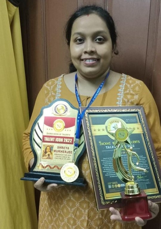 SHREYA MUKHERJEE, Born on November 6, 1989, Chandannagar, West Bengal, India is a versatile women, who has achieved various accolades in national and international level art exhibitions. She had received BEST LIFE STUDY award from Kalakunj foundation in 2021, BHARATIYA KALA SAMMAN award in February 2022, Portfolio Winner in Art by Artist contest, DREAM AWARD 2022 in National Online Art Exhibition, EXCELLENCE AWARD in 4th International Online Art Exhibition 2022, PAUL CEZANNE Award in International Art Exhibition 2022, RAJA RAVI VARMA International Award in 2022 and RAMKINKAR BAIJ AWARD in International legend Artists award show 2022.