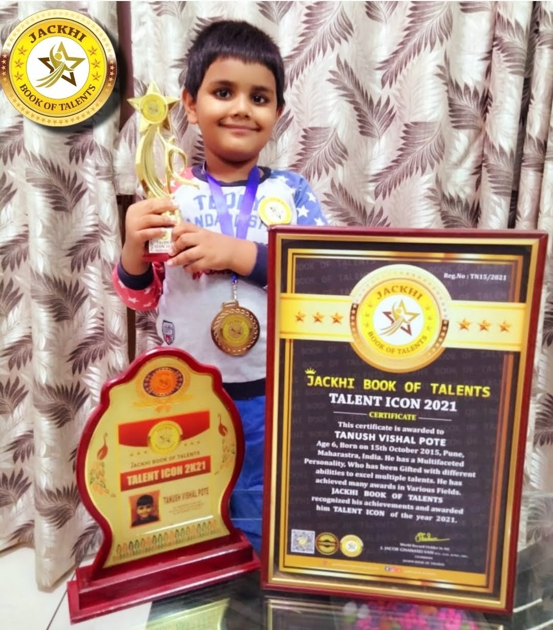 TANUSH VISHAL POTE, Age 6, Born on 15th October, 2015, Pune, Maharashtra, India. He has a multifaceted personality who has been gifted with different abilities to excel multiple talents. He has achieved many awards in Various Fields.