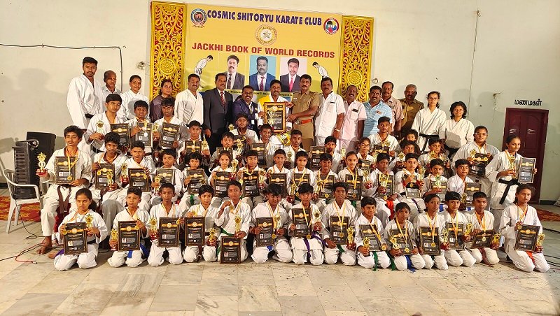 Rensi P.SIVAKUMAR 5th DAN, Founder and Technical Director, COSMIC SHITORYC KARATE CLUB, Coimbatore, Tamilnadu, India organized a World Record on Karate Katta. 40 Students in the age group 3 to 15 participated and performed Karate Katta relentlessly for 3 hours and set a World Record on 9 October 2022 at Sakthivel Kalyanamandabam, Coimbatore, Tamilnadu, India. This achievement is registered in JACKHI BOOK OF WORLD RECORDS.