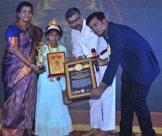 H.ASHWITHA, Born on 18 September 2014, Moovaloor, Mayiladuthurai District, Tamilnadu, India set a World record on MULTITASKING. She has travelled around 500 meters while performing Hula hoop rotations and Silambam in 10 minutes and performed Hula hoop rotations inside the giant air baloon in 2 minutes 10 seconds. This event was held at the campus of Alagujothi Academy ( CBSE) , Mayiladuthurai District, Tamilnadu, India to commemorate Dr.APJ Abdul kalam's 91st Birth Anniversary on 15 October 2022.