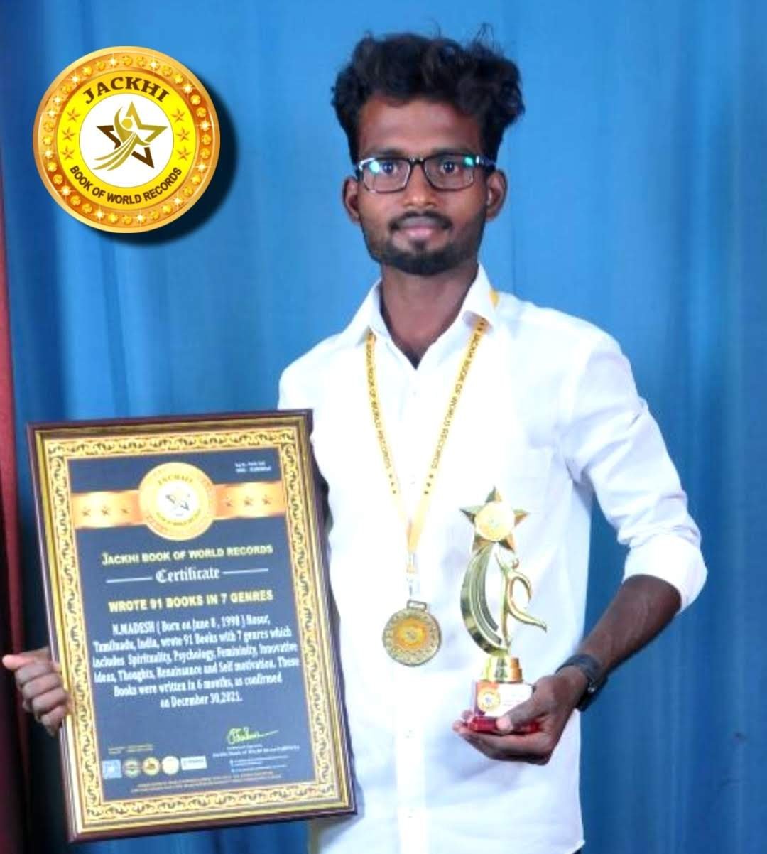 N.MADESH, Born on June 8, 1998, Hosur, Tamilnadu, India, wrote 91 Books with 7 genres which includes Spirituality, Psychology, Femininity, Innovative ideas, Thoughts, Renaissance and Self motivation. These Books were written in 6 months,as confirmed on December 30,2021.