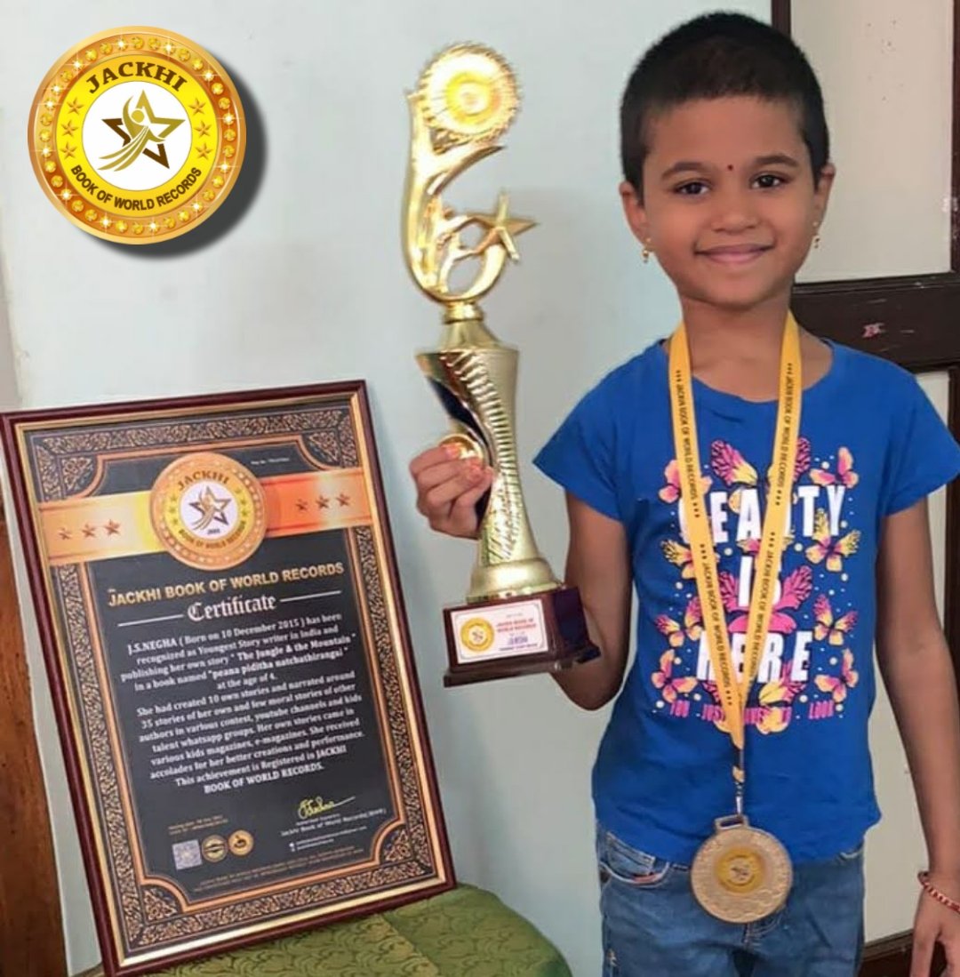 J.S.NEGHA, Born on 10 December, 2015 has been recognized as YOUNGEST STORY WRITER in India and published her own story "The Jungle & the Mountain in a book named  "Paena piditha Natchathirangal at the age of 4.