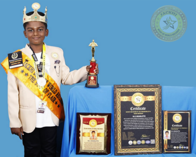 jbuser2026-01-15T17:05:08+05:30N.C.SHANJITH, born on April 04, 2015 residing at Perumbakkam, Chennai, Tamil Nadu, India has set a New World...
