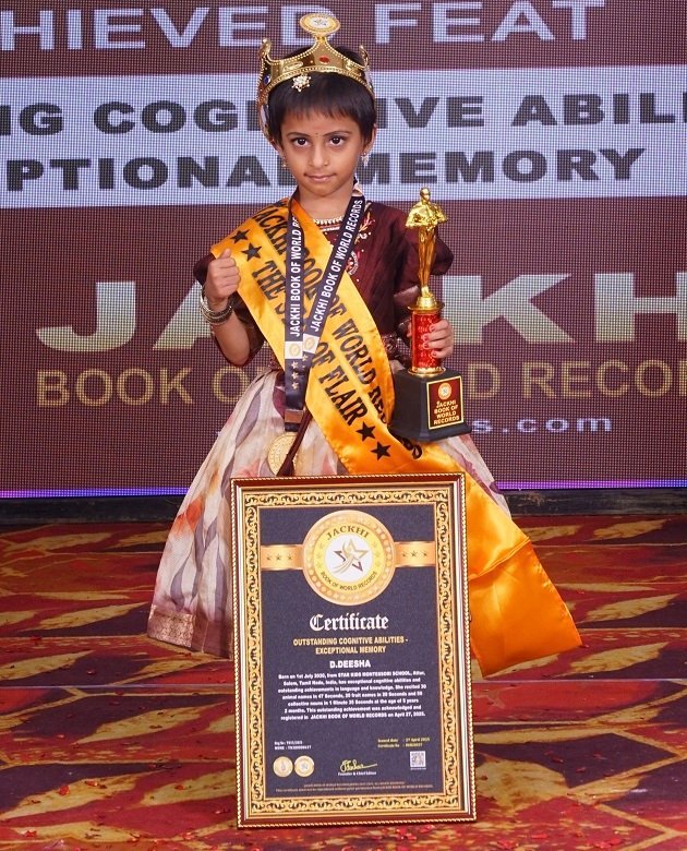 jbuser2025-06-03T14:00:10+05:30D. DEESHA, born on 1st July 2020, from STAR KIDS MONTESSORI SCHOOL, Attur, Salem, Tamil Nadu, India, has...