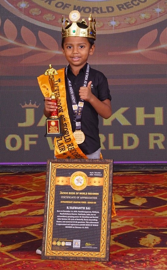 jbuser2025-06-03T13:55:15+05:30R.YASWANTH SAI, born on December 14, 2020, Vanathirajapuram, Malliyam, Mayiladuthurai District, Tamilnadu, India, has an extraordinary grasping power....