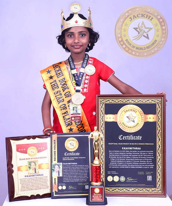 jbuser2025-05-25T08:32:06+05:30P. KAVIMITHRAA, born on February 14, 2018, Malur, Karnataka, has achieved remarkable feats in various categories including, Performing...