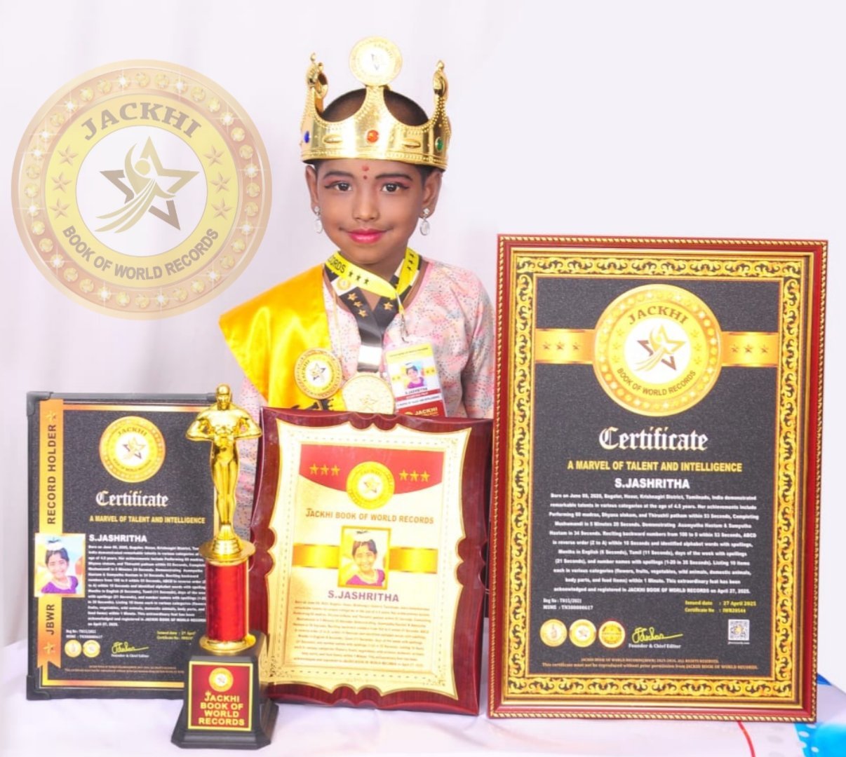 jbuser2025-05-25T08:03:00+05:30K.LEDHANYA SHREE, Born on 28 July 2016, Father Name: M. Kanagaraj from Madurai, Tamilnadu, India achieved a remarkable...